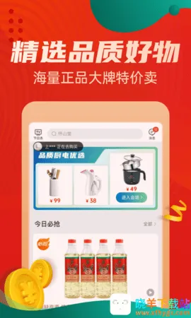 2. 实惠购物体验:每日推出特价商品限量抢购,还有拼团优惠,100%正品保障,让用户享受更低价格。签到能获积分抵现,还有各种优惠券和返利红包,省钱又省心。