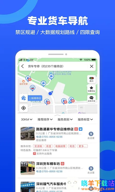 精准导航:依据大数据限行限高限宽信息精准定位,提供准确路况,装货拉货轻松无忧。
