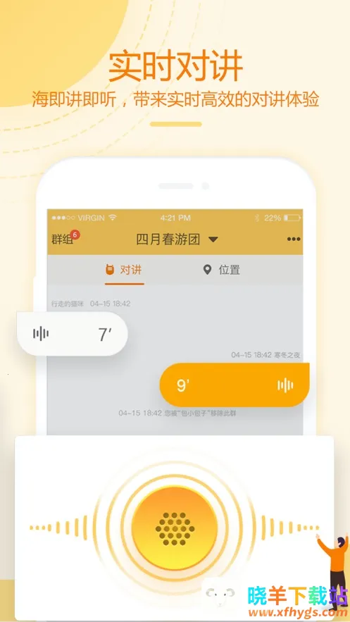 2、通话省流量:无需手机常亮,黑屏状态下能收听语音对讲,群组内成员在线即可随时保持通信,说话产生流量,静默不费流量,节电又省钱。