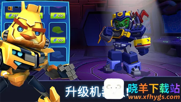 3、丰富养成系统:小鸟变形金刚可升级增加属性,随着关卡解锁,能使用更多角色闯关,还有多种升级方式,如升级武器增添能力等。