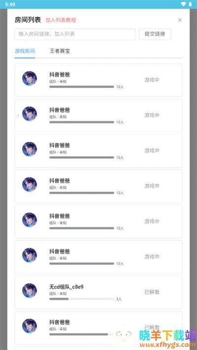 使用时,先下载最新版,打开应用点击允许权限,就能设置房间类型、自定义选择地图、模式、等级金币等,点击创建房间,还能输入链接加入列表。