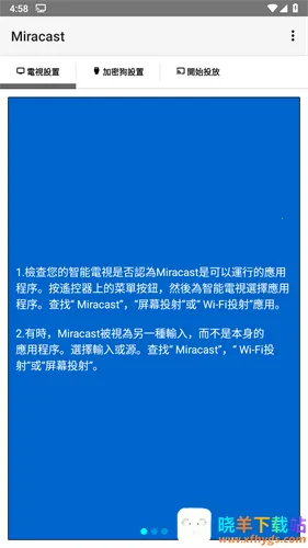 Miracast是一款安卓手机投屏软件,可将手机屏幕内容投射到电脑或智能电视上。支持Wi-Fi显示,操作简单,一键连接,能镜像投屏、播放多媒体,兼容主流安卓设备,带来便捷投屏体验。