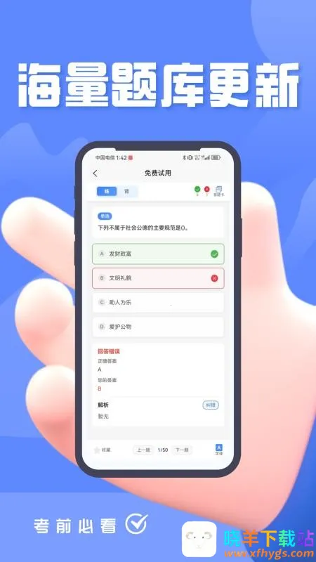 公路养护工考试题峰有诸多特色。**海量题库**提供海量职业考试练习资源,让用户高效畅快学习。多样练习模式,专项提升与全面巩固都能实现。精选题库紧贴大纲,满足日常刷题需求。题目详解深入,助用户多维度了解知识。还有详细个人练习数据,方便分析与针对性刷题。考试资讯丰富,助用户把握考试方向,无论新手还是在岗人员,都能精准匹配需求,一站式解决练习难题,助力顺利备考。