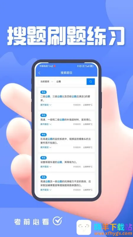 公路养护工考试题峰是一款备考软件,有丰富学习资源,涵盖历年真题等题库。具备刷题科目选择、模拟试卷、题目搜索等功能,能自动记录错题和练习数据,提供详细解析,助用户高效备考拿证。