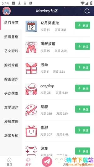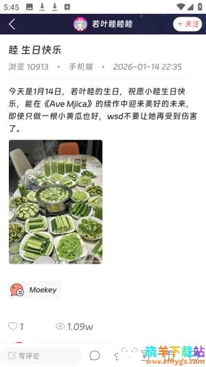 Moekey是一款超棒的二次元圈子软件,能满足大家多样化需求。它支持文字、插画、短视频、同人小说、Cosplay等多种类型。在这里,能找到乙女游戏、漫展、文学、cosplay等不同圈子的同好,大家可以随心分享想法、展示作品,拥有专属纯净空间。软件功能丰富,首页能看到不同用户帖子,可点赞评论;点击圈子能关注番剧、手板模型、绘画创作等社区;还能搜索感兴趣内容。登录方式多样,进入软件点击右下角“我的”,再点右上角注册,能用邮箱或QQ登录。发表评论也不难,先在首页浏览想评论的帖子,点击进入后下方有评论框,输入文字即可,但要先登录账号哦。快来下载Moekey,尽情享受二次元交流的乐趣吧!