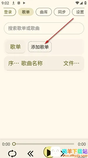 1、进入软件后点击添加歌单。