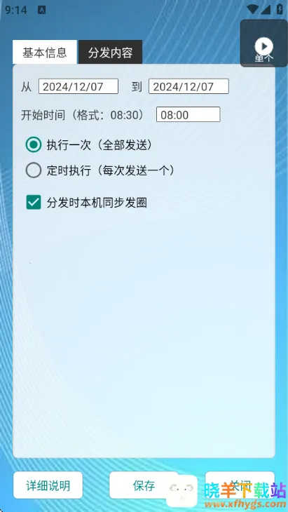 4. 全自动发送:能一键配置发送时间、频率、内容和评论,配置后无需额外操作即可全自动发送朋友圈推广。
