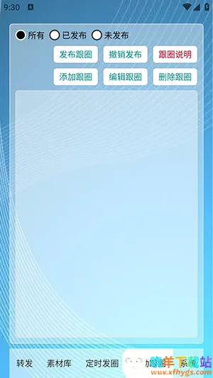 定时自动发圈安卓版是一款社交媒体智能工具,支持文字、图文、链接定时发布,操作简单。有丰富模板,能跟踪转发好友圈,可一键批量设置发圈,还能配置发送参数全自动发圈,助用户轻松管理朋友圈。
