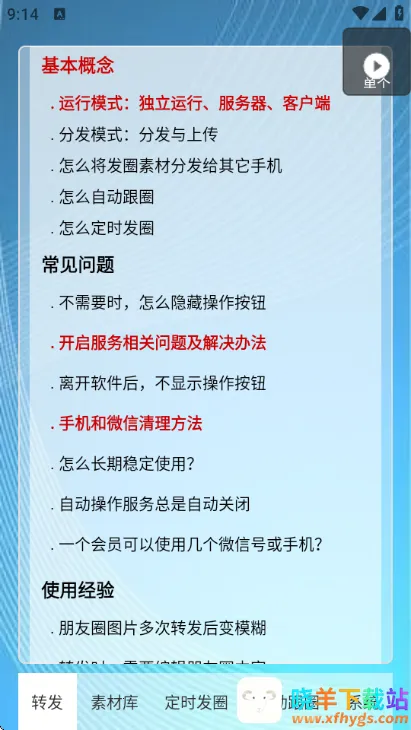 定时自动发圈安卓版手机版特色显著。操作简单,能轻松上手,支持文字、图文、链接等定时发布,还可批量发送。它提供丰富模板,助你创作高质量朋友圈内容。能在线跟踪转发好友朋友圈,一键批量微信设备设置发圈,实现统一云控管理。一键配置发送时间、频率、内容和评论后,即可全自动发圈推广。可在线下载好友朋友圈素材,在素材库管理发圈素材,随时设置本机定时发圈任务,还能在线跟踪转发,接收发圈素材客户端。使用时手机连接充电器,保持运行,有专用工作手机更佳。