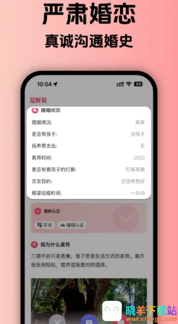 荒野说是一款专注高质量再婚的严肃脱单交友APP。它通过实名和婚史双重机制认证,杜绝虚假信息。这里所有用户都实名认证,个人信息完整。软件特色众多,是离异再婚人士专属的相亲婚恋平台,能帮你找到对的人结婚。有学历、房产、车辆、婚姻等多重认证,构建高品质相亲环境。实名制注册,拒绝虚假,创建绿色健康的相亲环境。你还能发布动态,让更多人了解你,快速找到合适对象。专业红娘在线牵线,提高相亲成功率。软件功能强大,实名认证保障真实,智能匹配推荐精准,有深度交流环境。优势明显,可查看对方详细资料,快速匹配心仪对象。多重身份认证确保资料和照片真实可靠,交友安全放心。全新互动交友形式,视频交友带来永恒缘分,能很好地满足离异人士寻找再婚对象的需求,解决大家脱单的问题,让再婚之路更便捷。