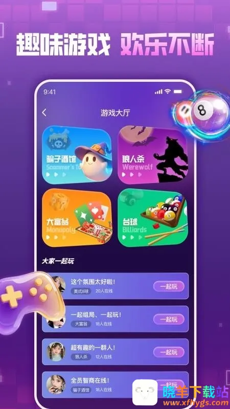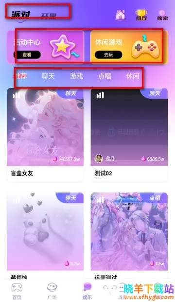 5、点击娱乐页面,可以跟大家一起聊天玩游戏等