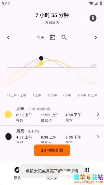 6、点按太阳或者月亮可了解位置详情。