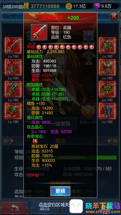 5、点击锻造,玩家们可对装备进行升级、强化、镶嵌宝石、晶石等操作;