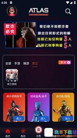 4. 界面简洁直观:整体布局合理,功能分区明确,首页展示热门推荐,菜单栏设置清晰,涵盖账号买卖、个人中心等功能入口。