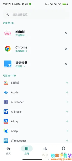 3. 能对每个应用统计使用时长,达到预设限额会提醒或限制,帮你合理分配时间,养成健康上网习惯。