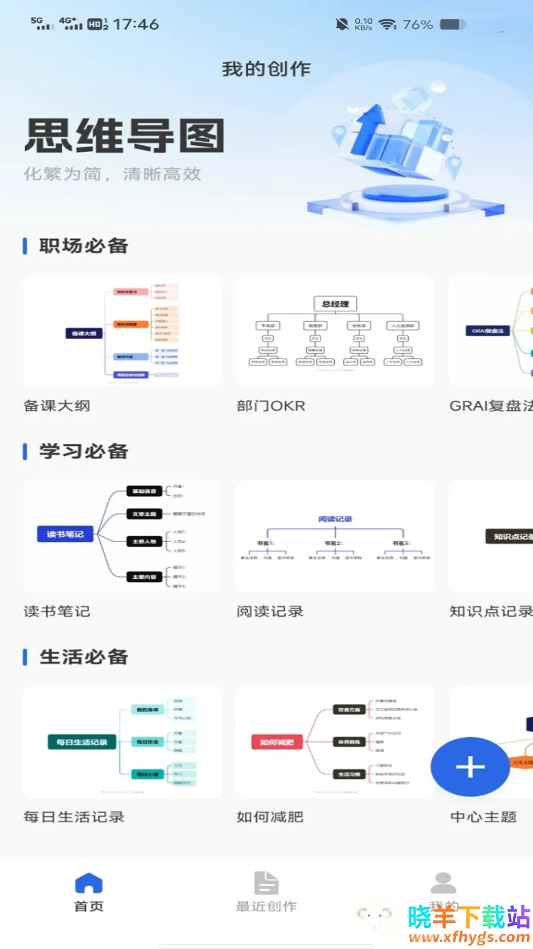 2. 可个人自定义思维导图模板,梳理出简单清晰的导图。