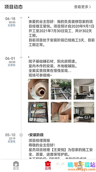 2. 动态全掌握:支持随时查看商务动态以及项目动态,能快速看到验收详情、户主信息等,还可线上编辑发布日志,查阅房屋装修详情并提要求意见。