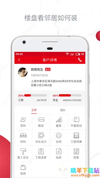 3. 便捷操作:自行选择客户详情极速阅览,客户信息随时查看,装修日志随时记录不受时空限制,工作台工作轻松,带来更多便捷功能。