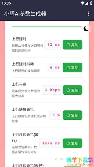 小辉Ai参数2026最新版本是网络性能测试及游戏体验调优工具,能精准复现真实网络环境,支持多场景弱网模拟,可自由定义核心参数。无需Root,无广告会员限制,操作简单,还有智能诊断、参数优化等特色功能。