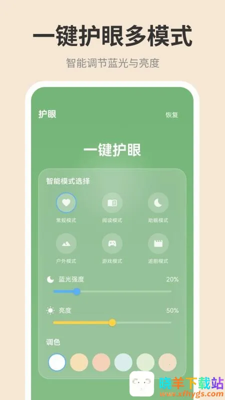 这款软件对于长期使用手机的人来说是个不错的选择。它操作简单,能让用户轻松按照需求手动调节亮度和蓝光强度,带来更好的用机体验。其主打个性化科学护眼模式,可根据场景自动调节亮度,还具有眼球专业放松训练及每天提醒完成护眼任务等特色亮点。比如能隔段时间进行眼部测试,让用户了解自身眼睛状况以调整用眼节奏;可创建专属护眼模式针对性放松眼球;涵盖多种场景模式适配不同环境习惯。有用户反馈下载后眼睛不再干涩,还能记录用眼数据,有助于养成科学用眼习惯,整体值得一试。