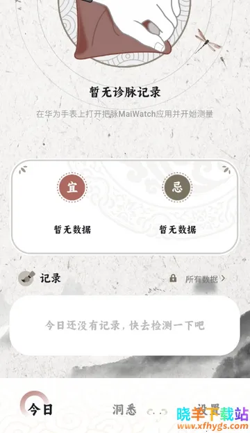2、进入软件今日页面,带上华为手表即可开始诊脉