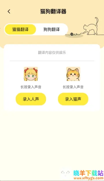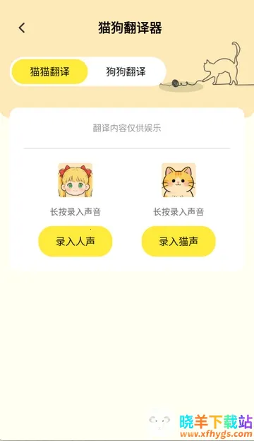 3、点击语音,可录入人声、猫声等进行翻译