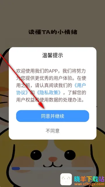 1、打开猫狗翻译工具app,点击同意隐私政策