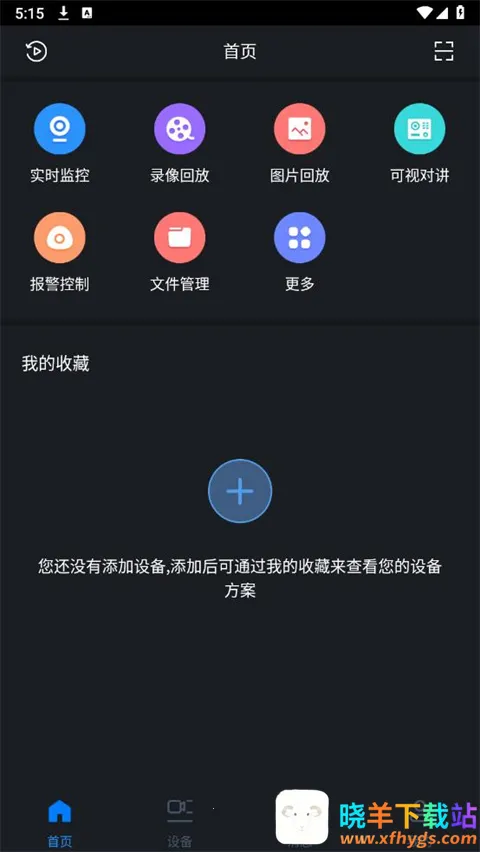 2、来到首页点击下方【+】号添加设备,成功添加后可以在【我的收藏】查看自己的设备方案,或者直接点击下放第二个【设备】也可以。