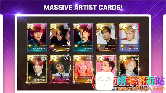Superstar SMtown韩服是一款备受欢迎的音乐游戏。它拥有众多脍炙人口的成名曲,以及多达2000多张潮流明星艺人卡牌,涵盖EXO、TVXQ!、SuperJunior等众多知名团体。玩家能在普通关卡Weekly和Superstar两大模式中,结合卡片与音乐收集、升级喜爱明星天团的卡牌,参加赛事,享受追星快乐。