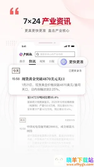 产联社app官方版为企业及从业者提供产业动态资讯。有AI智能推送、实时更新等特色,具备热点专题等优势,支持多终端,还有详细使用说明,如新闻收藏与管理等,助您把握产业趋势。