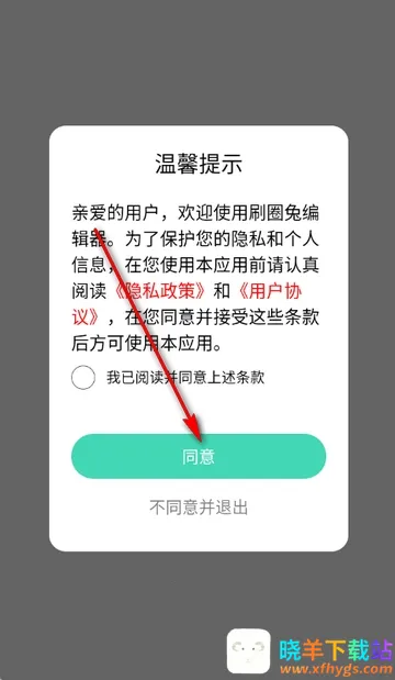 1、打开刷圈兔编辑器app,点击同意隐私政策