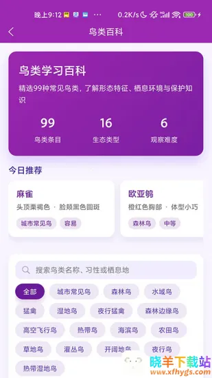 1. 支持多样搜索方式,可直接在首页搜索小鸟的名称、习性或栖息地。