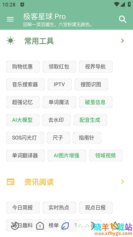 极客星球 Pro 是一款超实用的工具软件,包含多种实用工具,能应用于生活、学习、工作等各个领域,为你带来诸多便利。它将每个工具细致分类并介绍,像 AI 图片增强、音乐搜索、单词翻译等应有尽有。在这里,你能获取实时更新的资讯内容。软件亮点满满,会详细记录使用信息,方便下次使用;采用先进 AI 技术自动识别文字,应用场景广泛;所有资源严格筛选,无不良内容。其特色更是突出,与其他平台收费工具不同,这里的工具全部免费使用,使用时不受任何限制,能享受优质服务。它能满足不同人群需求,还可通过搜索栏查找。有了极客星球 Pro,无需担心费用问题,放心使用其中的工具,轻松享受便捷生活。