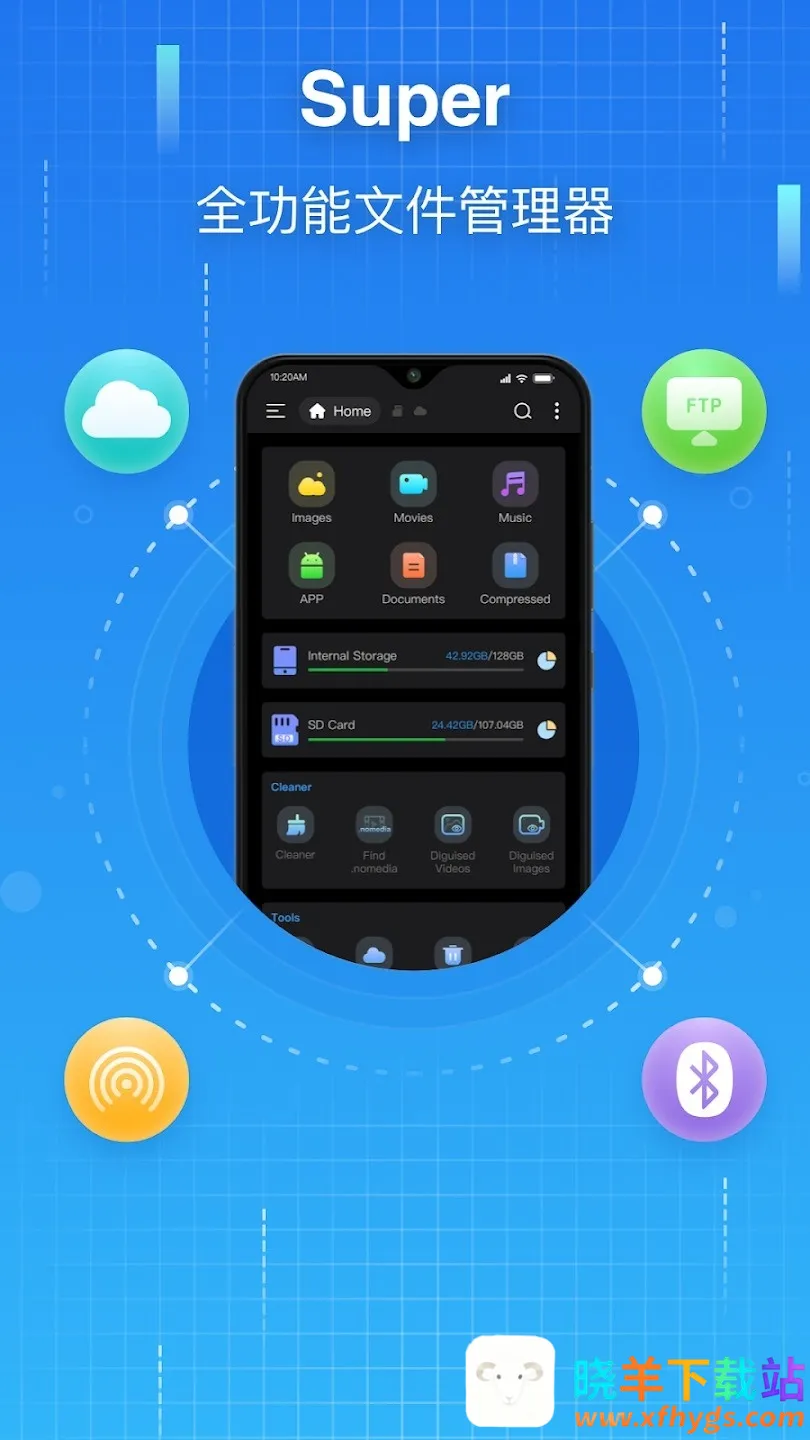 Super文件管理器可查看手机内部存储、SD卡及USB OTG设备文件,能清理大文件和重复文件,自动归类图片等。支持云盘直连、批量操作、压缩解压,还有应用管理工具,操作方便,新手易上手。