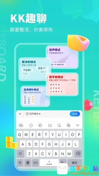如果你想拥有更有趣、便捷的输入体验,kk键盘是个不错的选择。它能解决很多实际需求,比如聊天时快速怼人、表白,轻松应对各种社交场景。有了它,无需打字,一键就能发送连发消息,各种快捷语弹让你在聊天中轻松应对。斗图也超有趣,智能关键词快速搜图,热门表情随时更新。还有好玩的语音包,覆盖各种聊天场景。它还是玩机必备,能快速输入常用词汇和表情。KK键盘还为多款游戏定制了键盘模式,打字语音全优化,专属语弹一键启用。而且它支持多种输入方式,自定义皮肤,满足你的个性化需求。无论是日常聊天、玩游戏,还是其他场景,KK键盘都能让你的沟通变得更有趣,带来极大的便利性,让你享受独特的输入法体验。