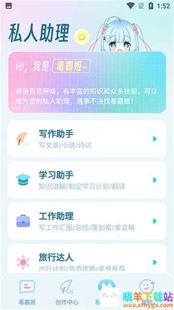 毒霸姬是一款超棒的手机软件,不开会员也能尽情玩。它能陪你聊天,随时倾听你的想法并给出有价值回应,提供情感陪伴。还有强大的写作助手,输入主题就能获得创作辅助。桌面宠物功能超有趣,能变换形象,给你实时陪伴和趣味反馈。在遇见或角色界面,能和不同角色、历史名人对话。它能解决你生活中的各种问题,比如无聊时找人聊天解闷,写作时寻求灵感帮助,想了解历史名人时也能轻松交流。操作很方便,界面清晰,功能分区明确,不管是深度对话、寻求写作帮助还是管理桌宠,都能轻松搞定,让你的生活更有趣、工作学习更高效,快来试试吧。