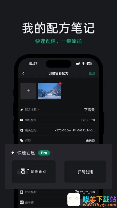 2. 识别生成笔记:智能识别照片内容,自动生成拍摄配方笔记,且有云存储功能,方便随时查看和管理。