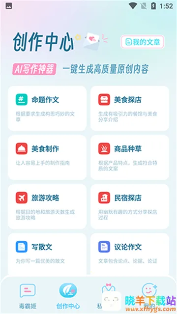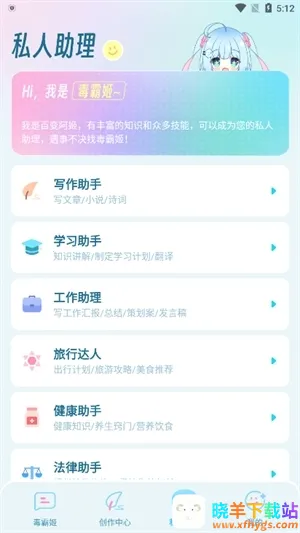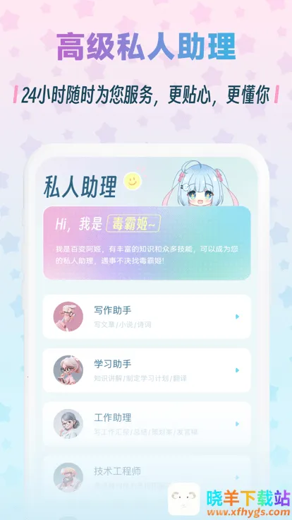 毒霸姬这款软件超棒的!它有智能对话功能,能随时陪你聊天,解答各种问题。还能提供手机维护与安全保护服务,让手机使用更安心。它的写作助手很厉害,能根据你的需求生成优质文稿,助力学习和工作。而且所有功能都是免费使用的哦!