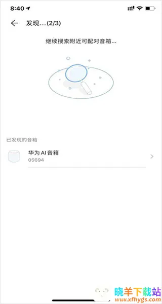 2、连接WIFI,使用APP配置音响。APP会自动搜索附近的音响,直接配对即刻。当配置完成后,对音响说“小艺小艺”即可使用!