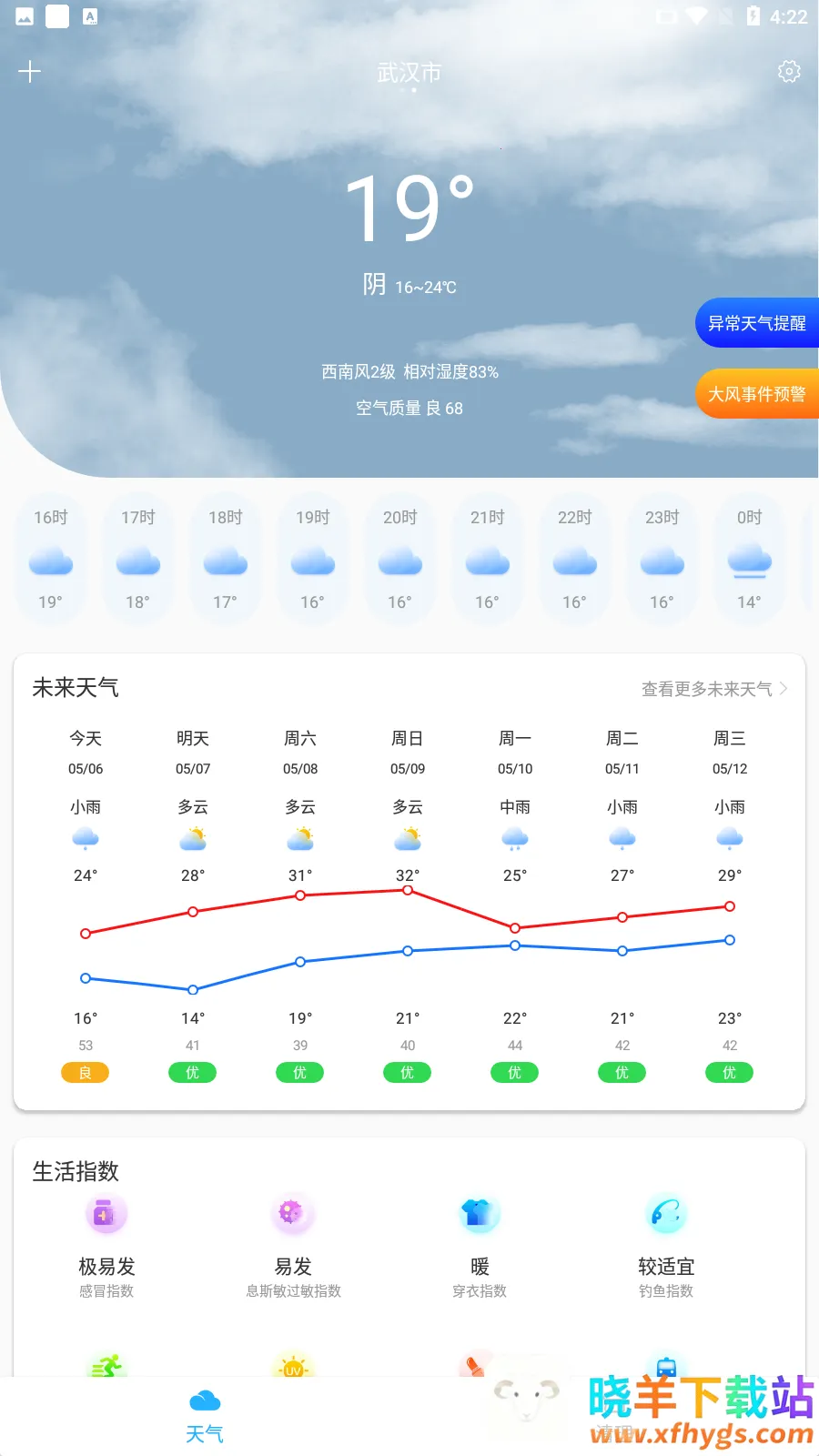 知云天气是便捷天气查询软件,采用权威数据源,能查全国20多万城市实时天气、24小时及15天预报、空气质量指数等。有自动定位、语音预报,极端天气预警推送,还可后台推送通知、自由添加关心城市。
