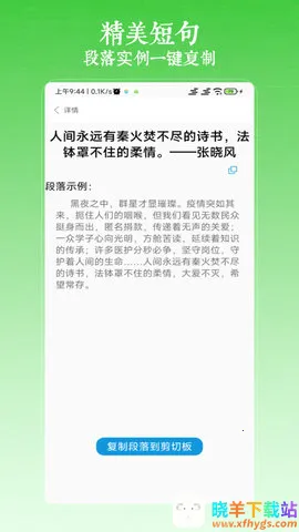 作文写作素材软件超棒!它主要针对小学到考研各阶段语文英语作文写作。有海量作文示例,涵盖各年级各种写法、中考高考满分作文、真题及预测等,还有专家指导与各年级单元同步内容。软件包含几万篇作文,有贴心搜索、收藏功能,是学生写作利器。特色功能众多,有作文素材、好词好句、成语字典、名人名言等,能让作文与众不同。英语作文板块提供写作素材、指导和热点作文,助提升英语作文水平。其内容涵盖写人、写景等所有作文类型。软件亮点十足,可随时收藏摘抄学习运用,让高分作文不再难。还能线上选导师学习,赏析满分作文找方法,有练笔专区、社区等功能,能与同龄人交流,进行听写测试、课外阅读等,多个版本教材同步,学习进度每日推送,助你轻松提升写作能力,赶紧下载吧!