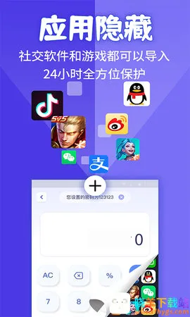 应用隐藏计算器是一款能加强手机隐私安全防护的软件。它功能超强大,能帮你把不想被别人看到的应用、游戏、照片等通通隐藏起来。