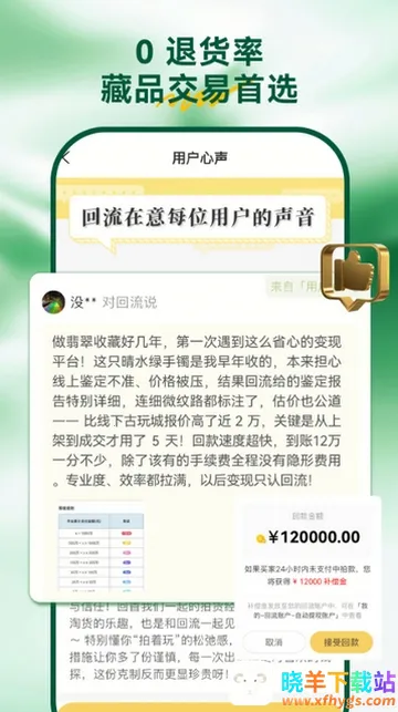 回流网2026官方最新版本是珠宝玉翠闲置交易平台,采用消费者到企业回收模式。有个性化服务、售后无忧等特色,功能涵盖搜索购买、海量甄选等,还有权威鉴定、清晰教程,保障交易,支持旧品换购。