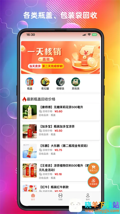 云上回收app是一款专注于瓶盖和包装袋回收的扫码回收平台。它很正规合法且安全。其功能强大,支持超多品类的瓶盖回收,像康师傅、红牛、脉动、东鹏等常见品牌的瓶盖都能轻松回收,各类包装袋也不在话下。回收成功可获积分兑换奖励。操作简单,一键扫码就能完成回收。软件亮点众多,采用AI图像识别技术,能自动区分50种可回收物品种类,精准匹配回收渠道;实时对接全国2000回收站点数据,确保报价与线下同步更新。从扫码估价到上门回收仅3步操作,最快2小时完成交易流程。除现金收益,还能累积环保积分兑换生活用品。有智能定位可快速找附近回收点并支持地图导航,还有数据追踪、社区互动、成就系统以及环保知识学习等功能,能让你轻松参与环保,收获满满。