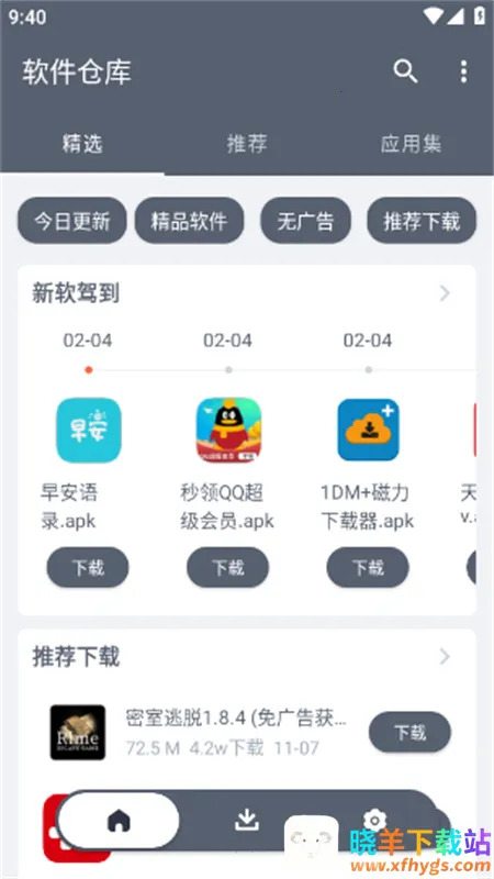 软件仓库分享版是一款超棒的资源库工具。它能帮你轻松找到各种软件和游戏资源。使用方法很简单:先下载本站提供的软件仓库 App,安装后打开。进入首页,有精选推荐和应用集。精选板块有今日更新且无广告的精品应用;推荐板块各类精品软件齐全;应用集板块点开相关合集就能下载应用,也能直接在顶部搜索框输入关键词找想下载的软件。它优势明显,免费又绿色无毒,还会尽快升级软件。能搜索各类移动应用,支持一键下载安装,免去繁琐操作。亮点是提供详尽资讯助你做决定,常见软件不断更新,整合各类软件形成好用的软件库,内容分类方便查找。有超多免费资源,涵盖软件、游戏等,每天更新宝藏软件,像音乐、阅读软件、去广告拦截工具等都有,能很好满足你的各种需求,让你轻松获取资源,享受便捷操作。