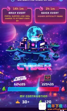 2. 丰富收集元素,奔跑过程中能收集金币、碎片、磁铁等道具,传送门出现可进入高速赛博维度,收集更多奖励。