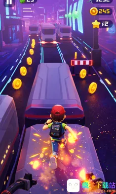 3. 多样玩法机制,有流畅灵敏的无尽跑酷玩法,跑墙和垂直移动系统,还有切换车道、沿着墙壁冲刺等操作,增加游戏趣味性。