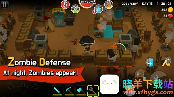 3、丰富防御体系:夜间僵尸准时来袭,种类随天数递增,可构建多层防御工事,从基础木墙、捕兽陷阱,到自动攻击的木大炮、石大炮、铁大炮,再到功能型防御塔,打造专属生存堡垒。
