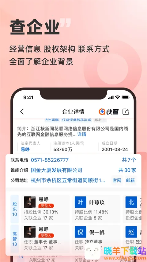 同花顺快查是一款超实用的大数据查询工具。它能免费查企业、查人、查数据、查风险等。输入搜索类型,就能轻松获取企业详细股东地址、联系电话等信息,覆盖1亿8千万企业征信信息。