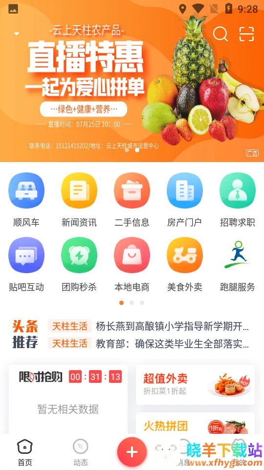 云上天柱 2025 最新版是贵州云三电子商务有限公司推出的同城生活服务软件。汇聚优质商家,有本地资讯、同城活动等。功能全,能找租房、交友、享受美食外卖。还有约伴搭伙、生活工作服务,为天柱人民生活带来便利。
